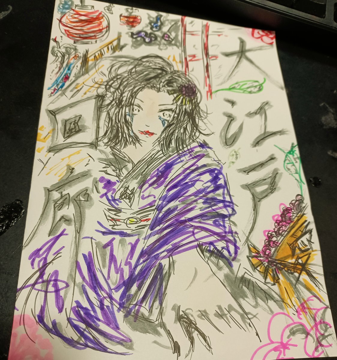 1 13 ポックエ6に向けて何も作ってない→そうだ。悲恋系のコピー本でも作ろう。白黒でいいや→……やっぱ色塗ろう→今ここ。 #ポップン #イラスト #お絵かき #ilustration #和風 22/06/07 03:54