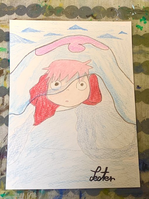 1 6 ポニョ色鉛筆で描いてみました♪ 楽しいな♪ #崖の上のポニョ 22/05/06 22:44