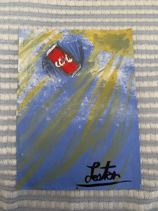 1 7 晴れた日 蹴った缶が空を舞っている絵 #アクリル絵の具 22/05/29 11:55