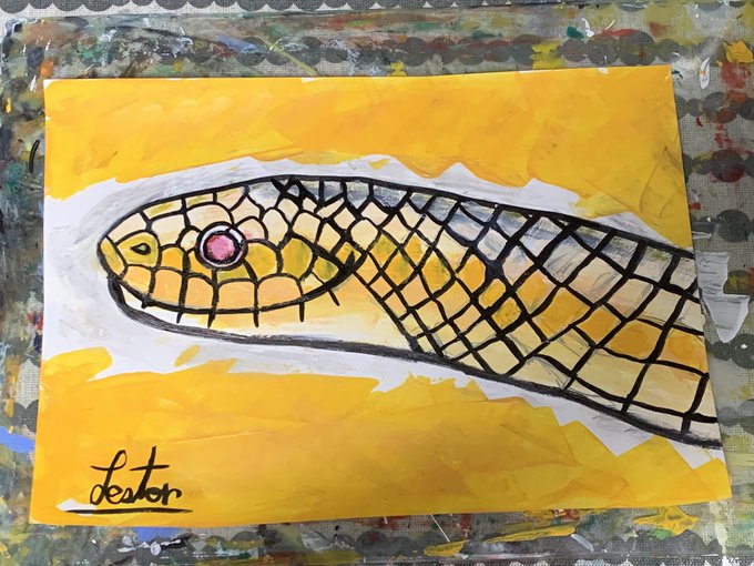 おはようございます 昨日蛇を描いてみました! #アクリル絵の具 #蛇