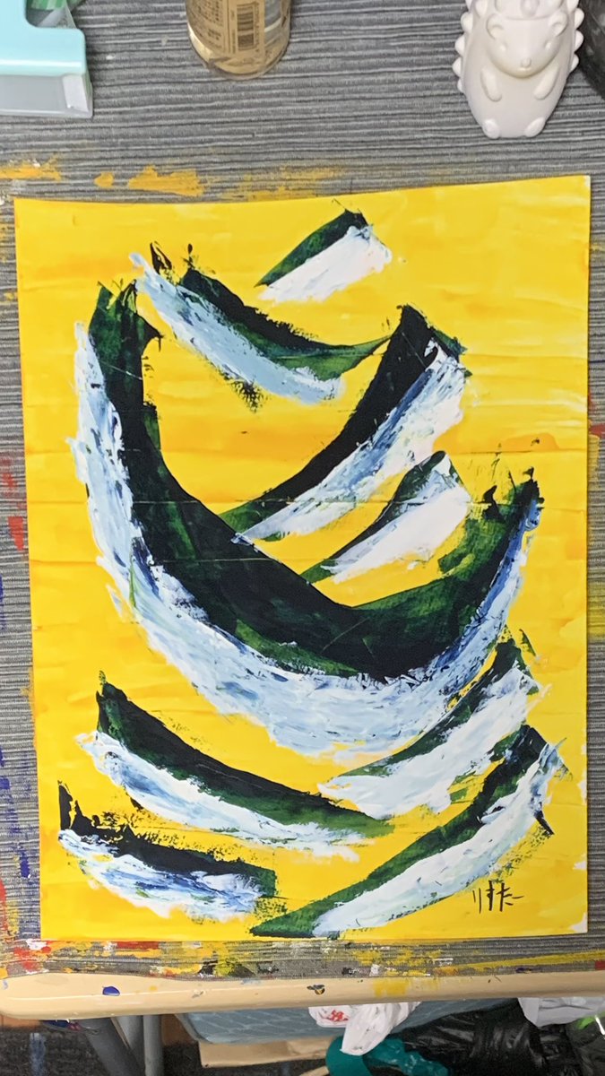 おはようございます 昨日描いた絵がようやく乾燥しました! タイトル「無題」 画材 アクリル絵の具 #アクリル絵の具 #無題