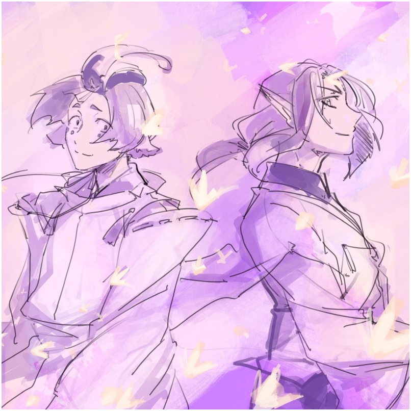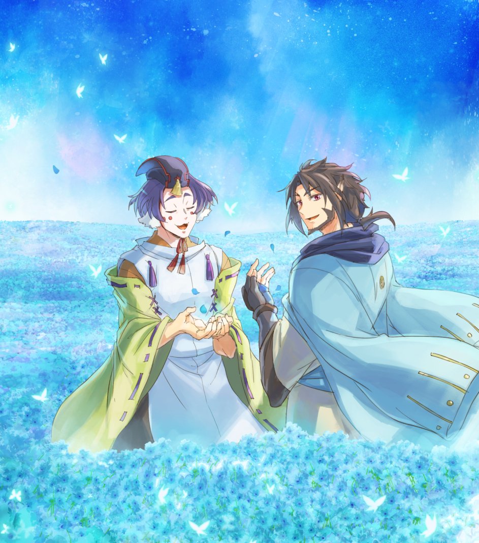 1周年のときに「我が道標となりて」の鏡の絵が嬉しかったので、鍵アカウントで描いたらくがき。ふたりのところだけ花びらが蝶々になっていましたね。 poipiku.com/73265/4126456.…