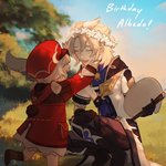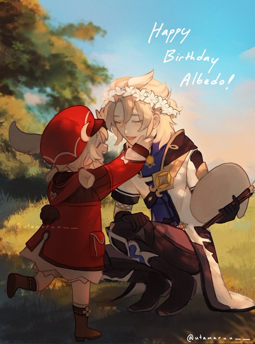 happy birthday big brother albedo! he got a cecilia flower crown from klee 🥰 🌼🌼🌼 #Genshinlmpact #原神 #Albedo #Klee #アルベド生誕祭2022