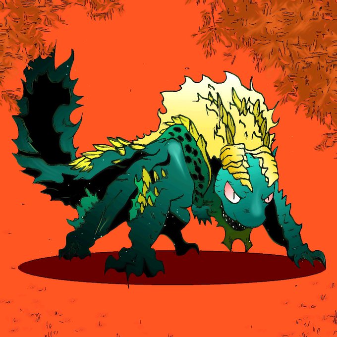 0 6 これは昔描いたジンオウガさん。 デフォルメバージョン。 #イラスト #ジンオウガ #絵描きさんと繫がりたい #デフォルメ 22/08/11 18:16