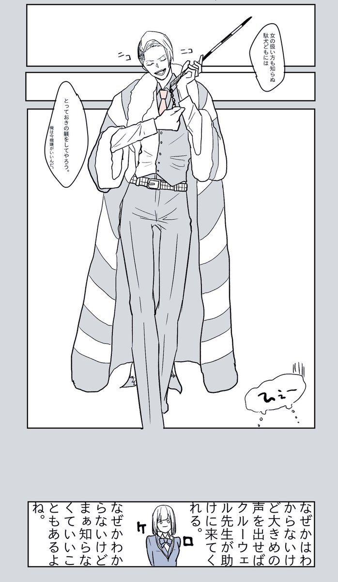 185 2318 叫ぶと来るーウェル先生とヴィランに染まってきた♀監督生(顔あり)のクル監。 またナチュラルに付き合ってます。 クルーウェル先生の俊敏な動きが見たかった。 #ツイステプラス #twstプラス 20/08/01 17:33