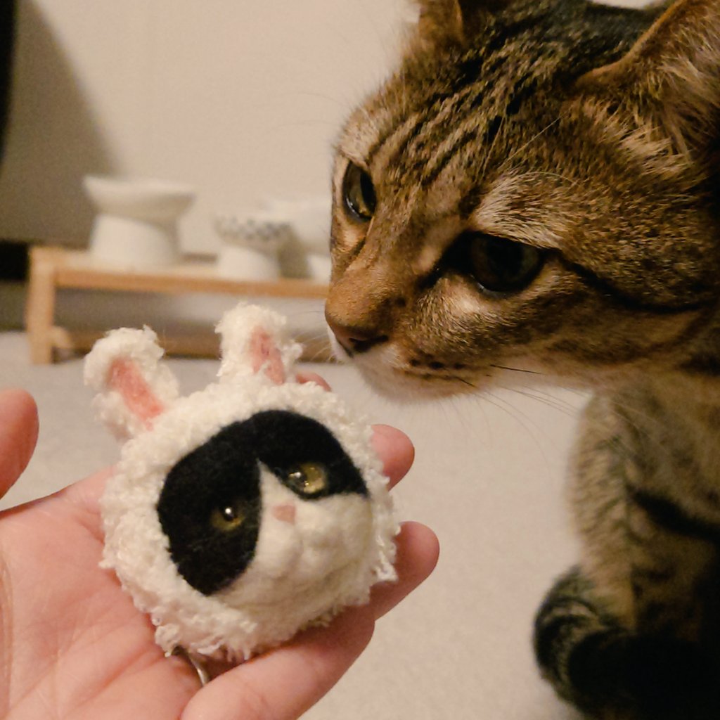 1 2 うちのこ干支ばーじょん🐰 かぶりもの苦手なコでもコスプレできる気分を味わえます😆 あと手触りが極上です!しっとりもふもふ♥ #羊毛フェルト #amechikan 22/12/11 12:51