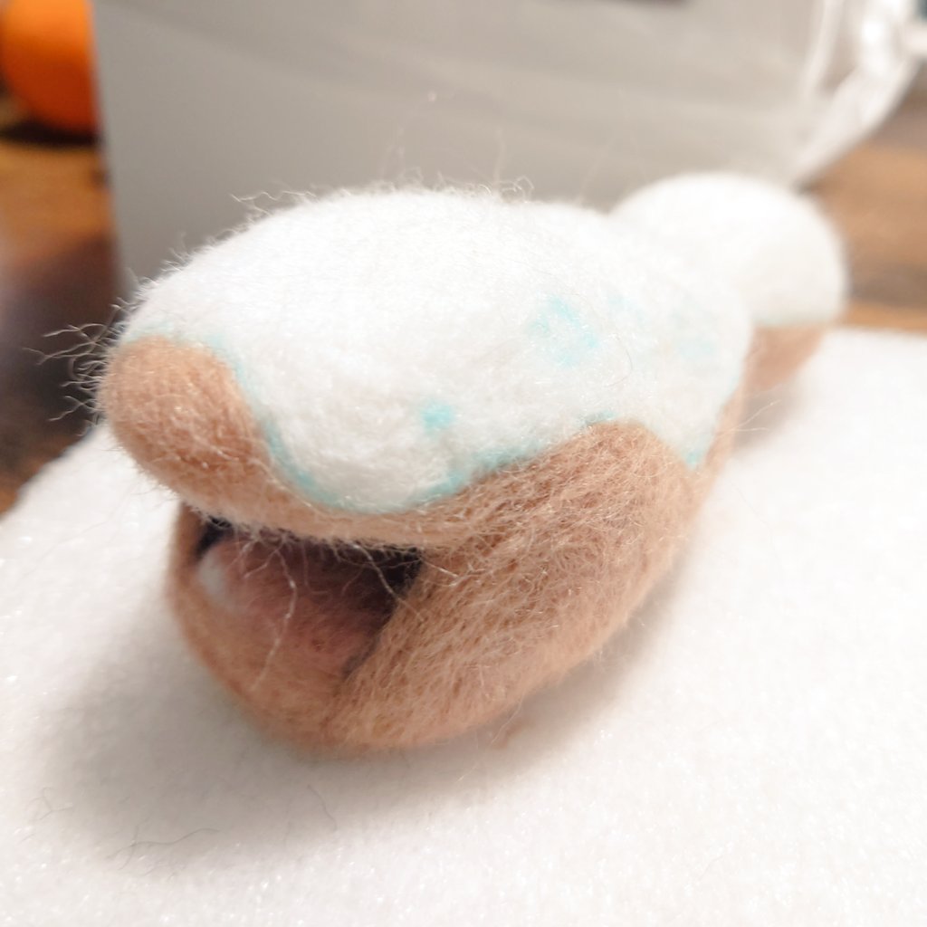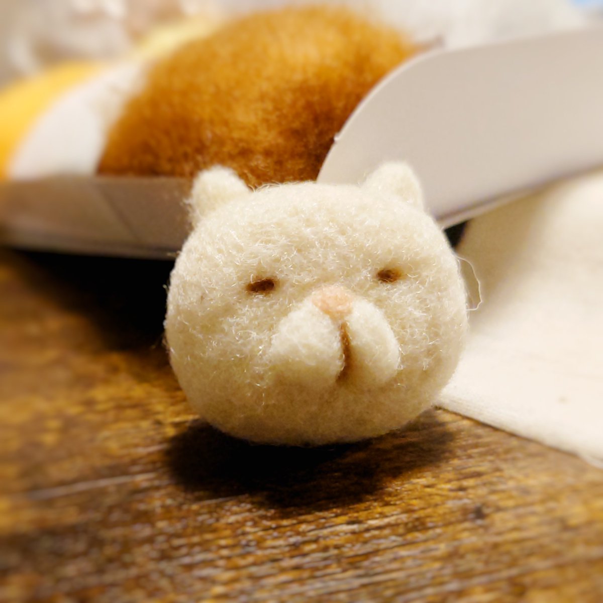 最近保護した子猫さんの具合が良くなくてお休みしていた羊毛フェルト 過去作品を載せてみる🍞 今日めっちゃ元気になったので明日からまたチクチク再開しよう! #羊毛フェルト