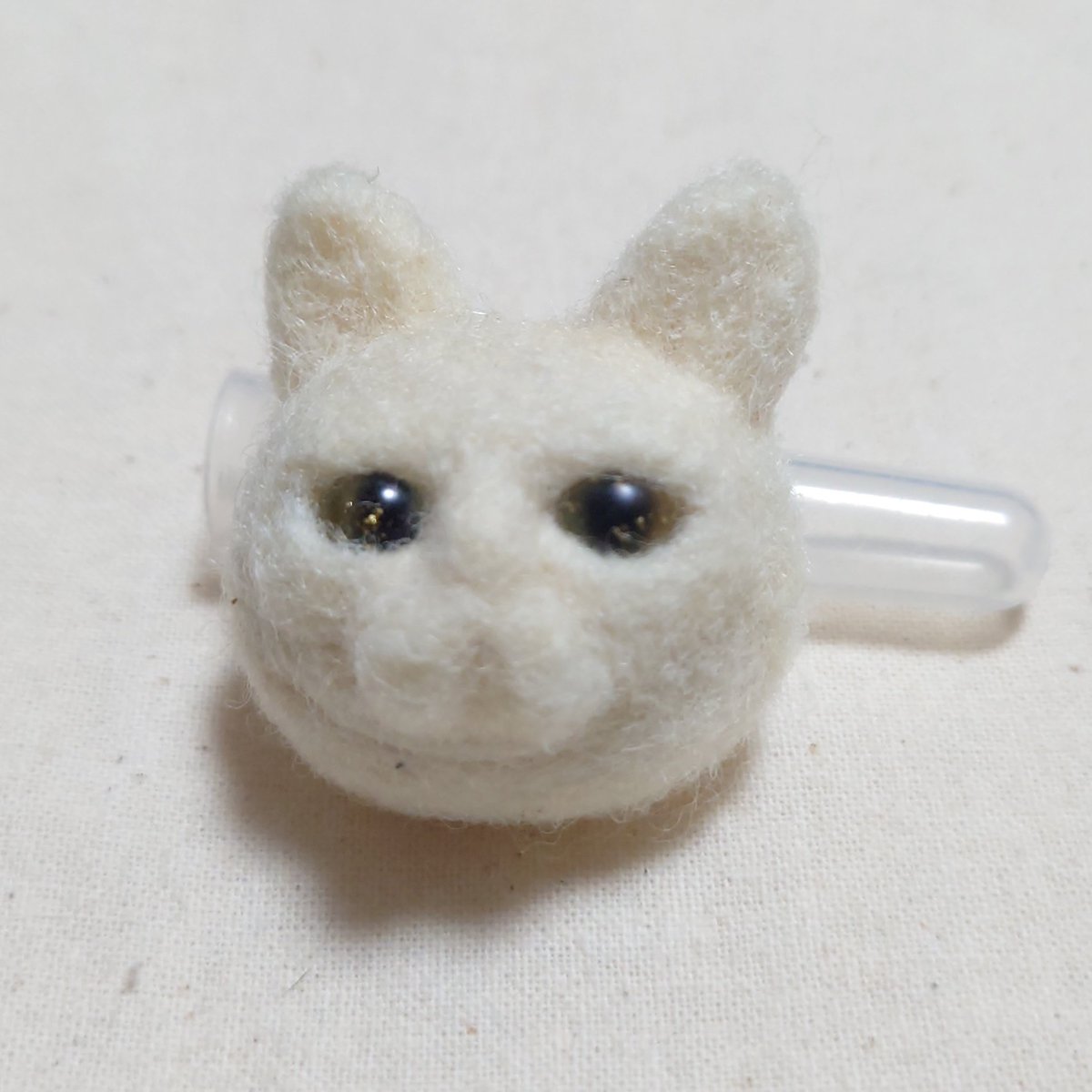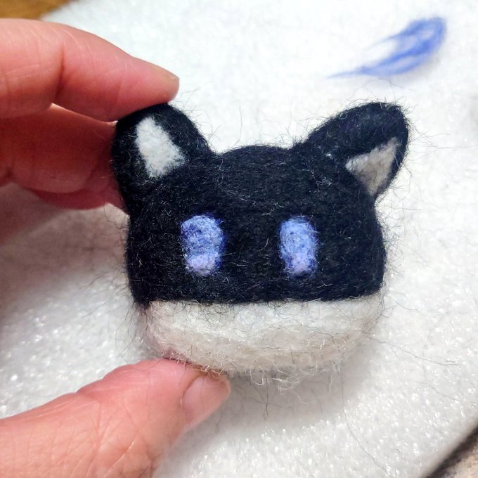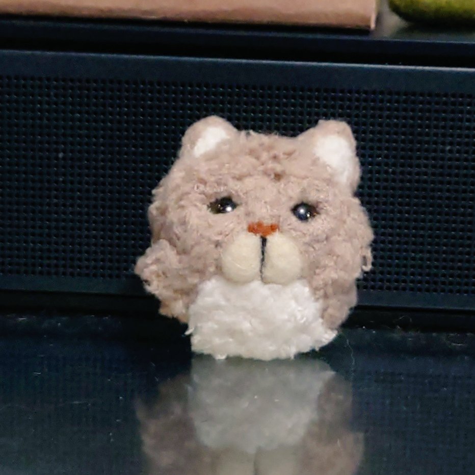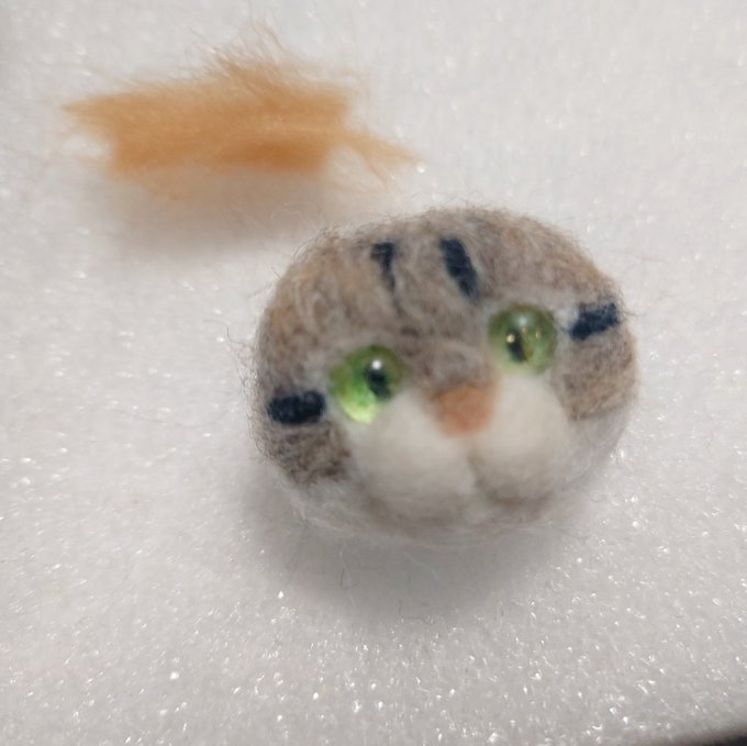 急に作りたくなった猫の顔 ブローチにするかチャームにするか悩みます🤔 あと頭に寿司乗せるかも悩んでるw #羊毛フェルト