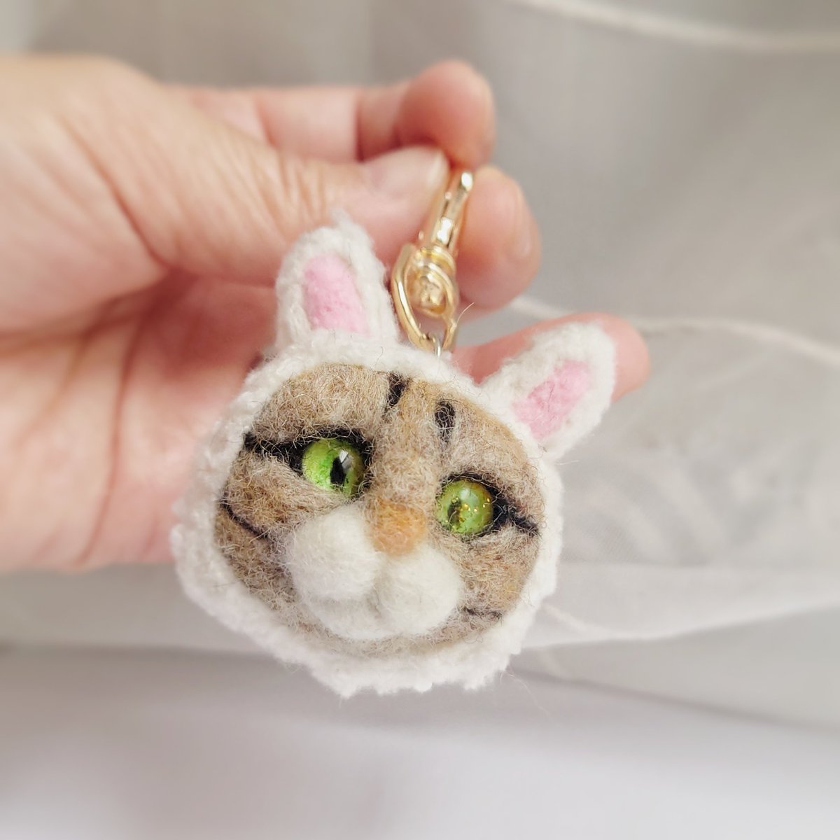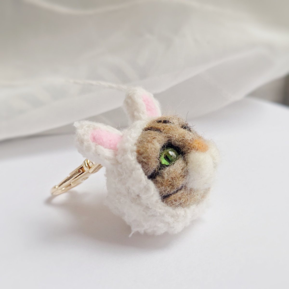 うちのこ干支ばーじょん🐰 かぶりもの苦手なコでもコスプレできる気分を味わえます😆 あと手触りが極上です!しっとりもふもふ♥ #羊毛フェルト #amechikan