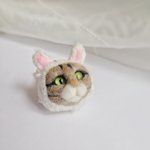 1 3 急に作りたくなった猫の顔 ブローチにするかチャームにするか悩みます🤔 あと頭に寿司乗せるかも悩んでるw #羊毛フェルト 22/12/14 03:01