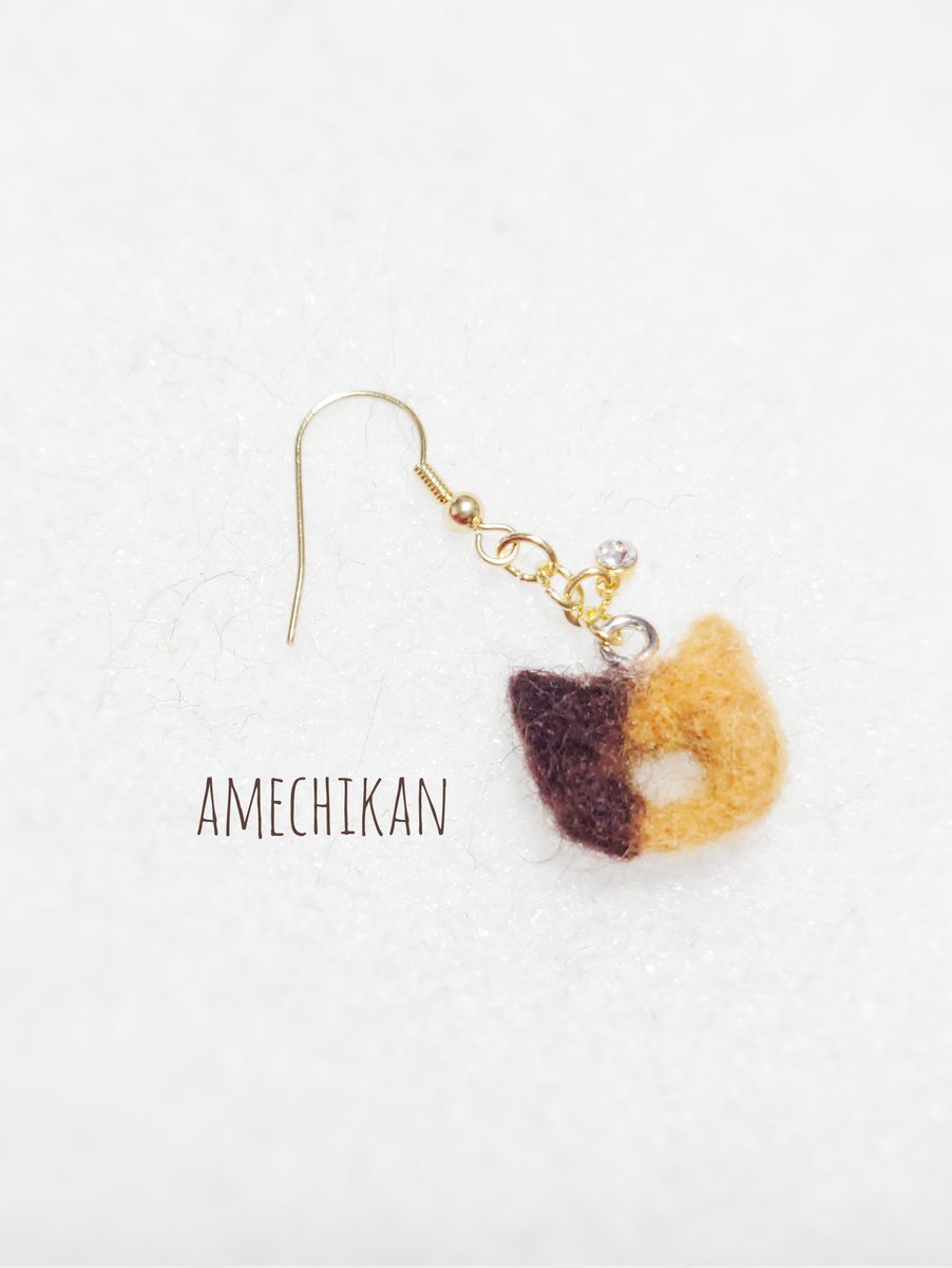 試作中のねこド🍩ピアス! 今日もうちょっと形を整える予定です #羊毛フェルト #amechikan