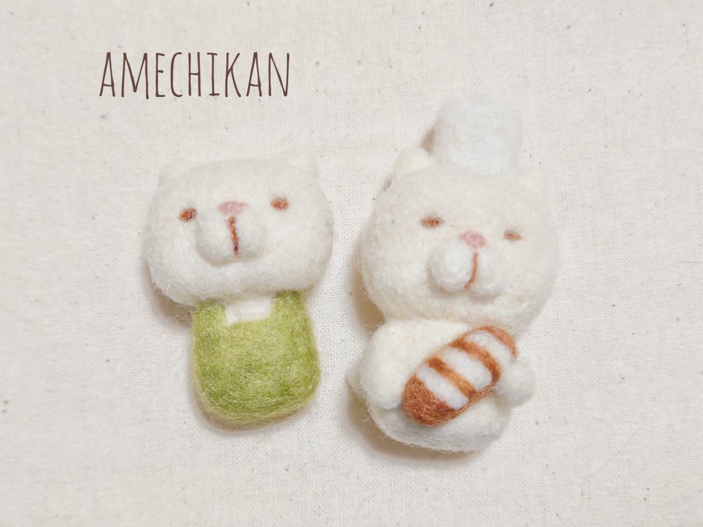 1 1 二人目は緑エプロンの猫さん。 お仕事何にしようかなー🤔 #羊毛フェルト #amechikan 22/12/16 02:48