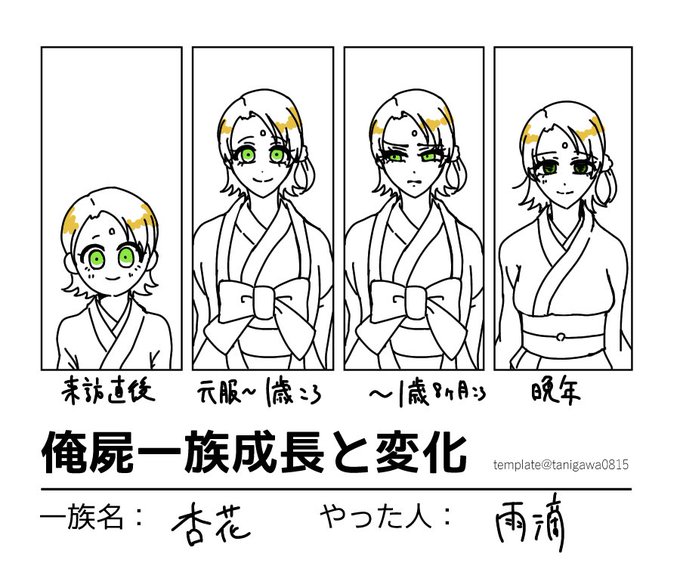 素敵テンプレ早速お借りしてらくがき。せっかくなんで顔つきの変化が特に大きかった子を選んでみました