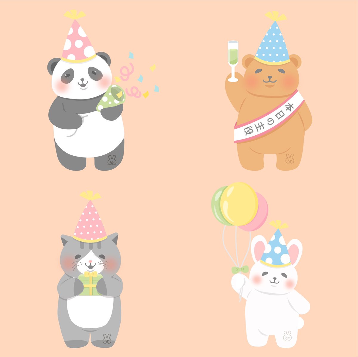 #今月描いた絵を晒そう 🎉パーティーアニマルたち🎉 #ゆるかわ