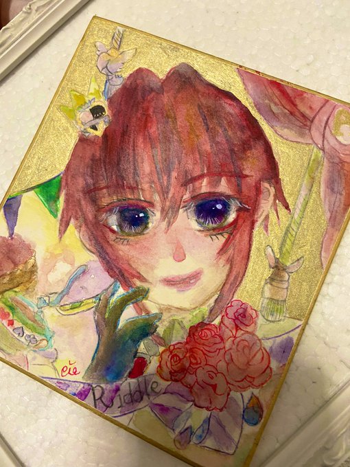 #ツイステファンアート #リドル・ローズハート誕生祭2021 #ツイステ好きさんと繋がりたい #ツイステ 遅くなりましたが、水彩画リハビリも兼ねて描いたリドル寮長完成しました、おめでとうヽ(´▽`)/ 描いたはいいけどどうしようこの色紙…