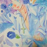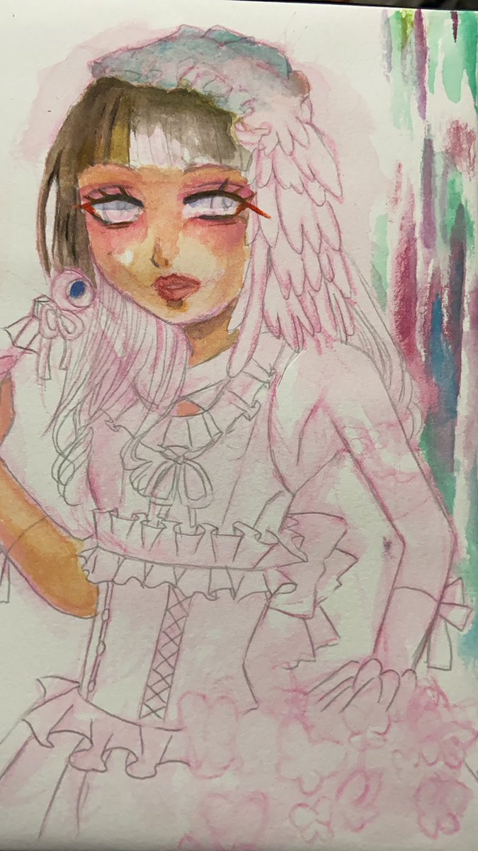 #水彩画 #お絵描き好きな人と繋がりたい テンアゲする時のリスト二つと水彩画の進捗です。(本気でだめになったらサンボさんとB'zさんを聞き出します) 今回下書きの状態からかなり大胆にやったんですが、これうまくいったらかわよくない⁉️ヘドレは5色置いて色抜いてます。今回、使用画材史上最大💪