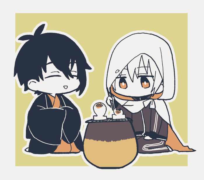 15 88 何番煎じかもしれないおせちでみかんば(あわよくばと思ってる🍊と自分には関係ないと思ってがつがつ食べる🌱) 23/01/08 02:37