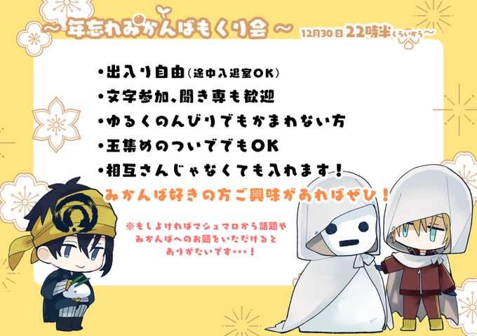 24 56 去年やって楽しかったのでまたやりたいです。 誰もこなかったらただのさぎょもくりになります…! よろしくお願いします~😊🍊🌱 22/12/28 23:34