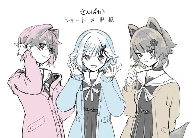 さんばか × ショート × 制服 #ヘル絵スタ #いぬいらすと #絵ンジュ #さんばか