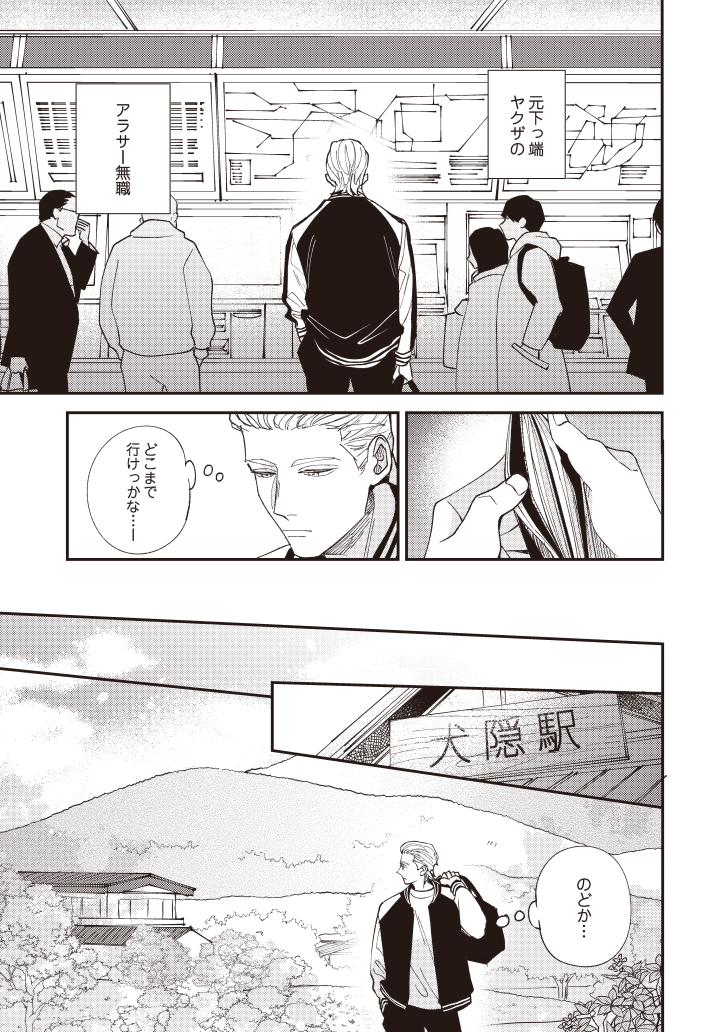 ヤクザやめて田舎に行ったら襲われて雌になる宣言された 1/8 元ヤクザのアラサー無職×野生児DD #オオカミくんのはずかしい コラボカフェ記念に再掲 #商業BL #創作BL #漫画が読めるハッシュタグ #試し読み