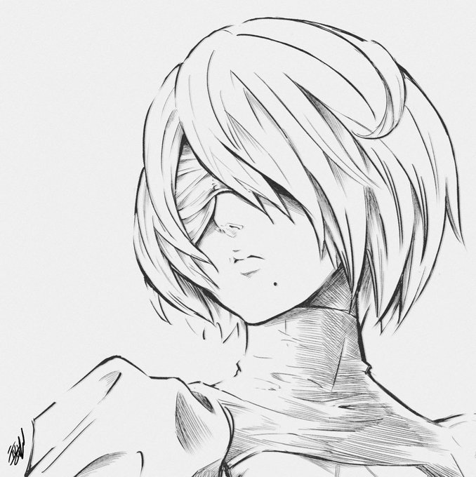 95 1243 2B(途中) #イラスト #NieRAutomata 23/01/23 06:33