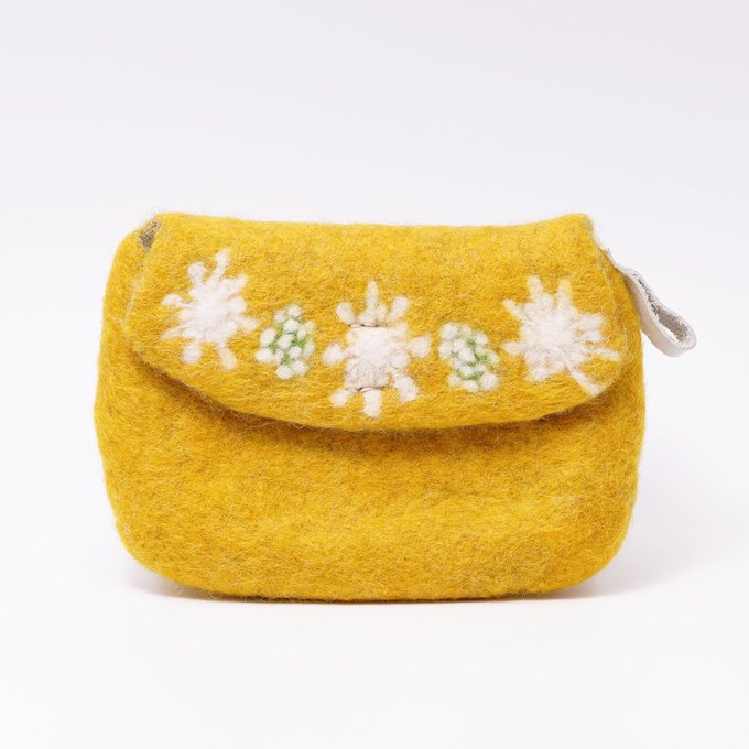 おはようございます 急なお知らせで申し訳ありませんが18時頃には所用のため外出します。 少し早めのご来店をお待ちしております。 こちらは #kuusi6 大楽久美さん作 ポーチ イエロー あたたかい色合いと羊毛の温もりに、気持ちもほかほかしてきます✨ kurumi.life/onlineshop/pro… #羊毛フェルト