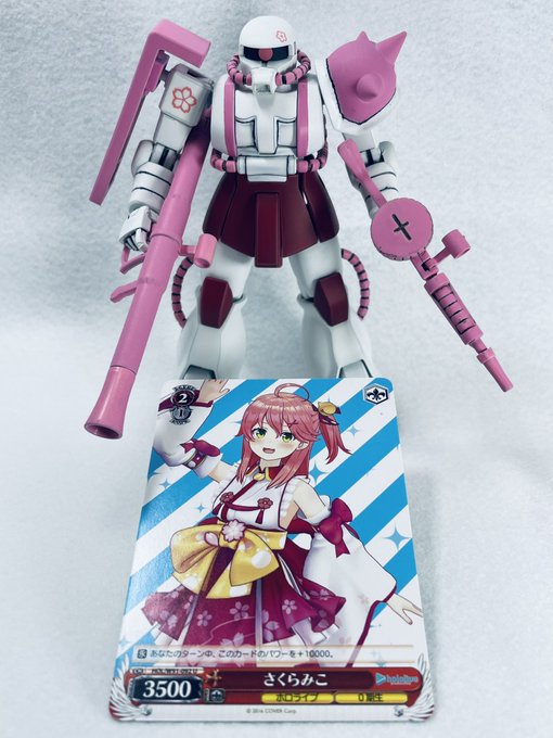 12 39 ザクII (ざくらみこ) 完成 ホロライブ さくらみこをイメージしたカラーで塗ってみた 塗装の粗が目立つ… もっと上手くなりたい… #ガンプラ #ホロライブ #さくらみこ 21/10/20 00:17