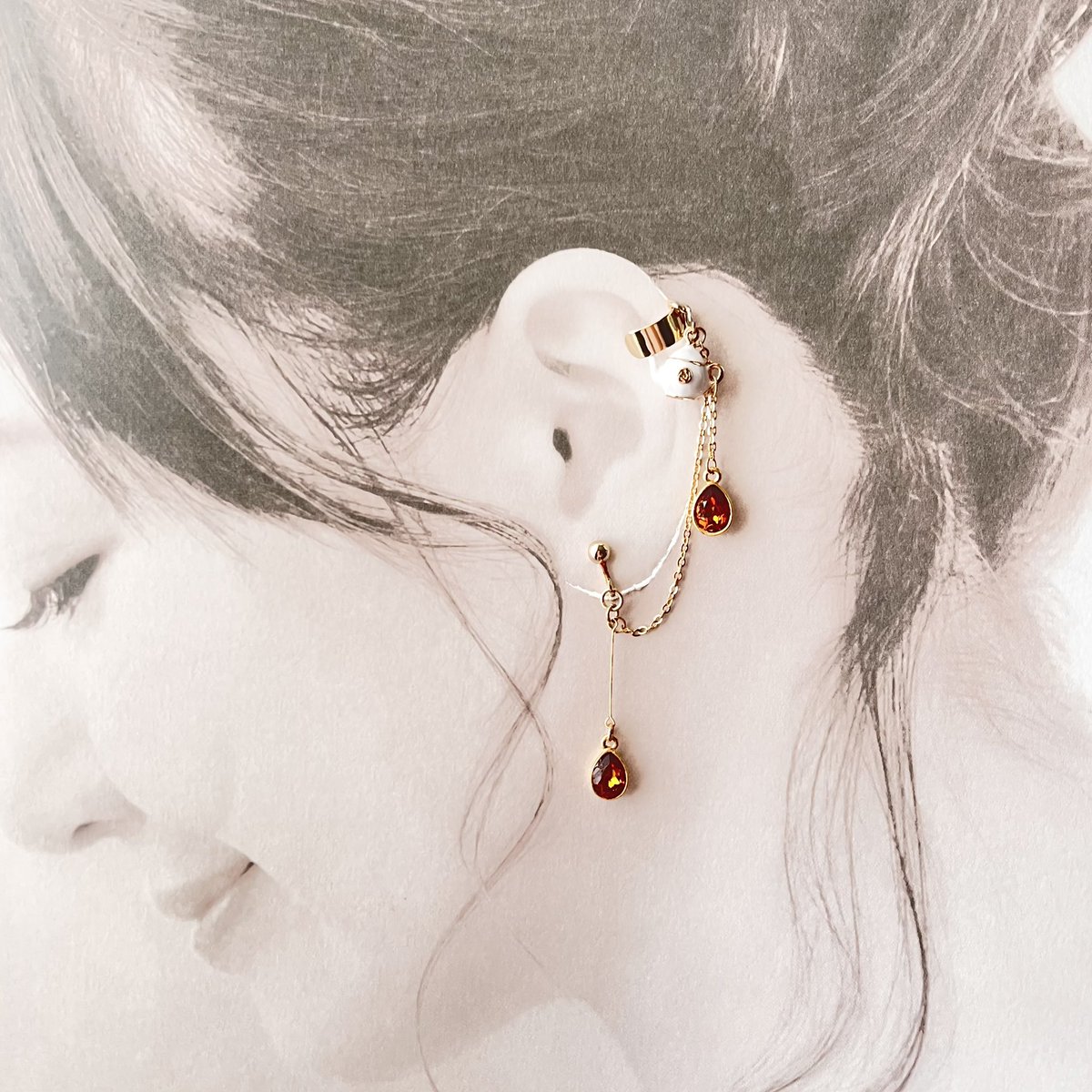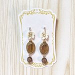 昨日の試作品✨ ティーポットから紅茶を注いでいる様子をイメージした耳飾りです☕️ 写真はもっと改善できそう🤔 つけ心地とかは今確かめてます!大丈夫そうだったら販売用の在庫用意します! いいなと思ったらぜひ♡をポチッとお願いします🙏💕 #虚音ハンドメイド #秋の創作クラスタフォロー祭り twitter.com/uturone_towa/s…