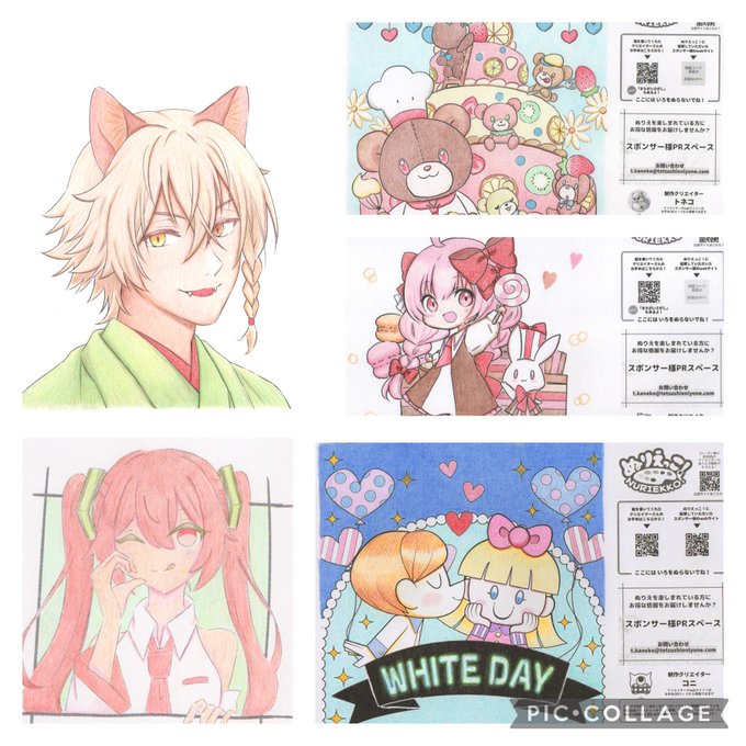 #ぬりえっこ 3月号より、マイコさん@m1c_works のホワイトデーイラストに色塗りさせていただきました!🙌✨ デフォルメ女の子&ウサギさんがとっても愛らしい💕 この可愛さを最大限引き出そうと思い、ピンク系でまとめました! お菓子にプレゼントまでいっぱいでなんだかウキウキしてしまいますね♪ twitter.com/i/web/status/1…