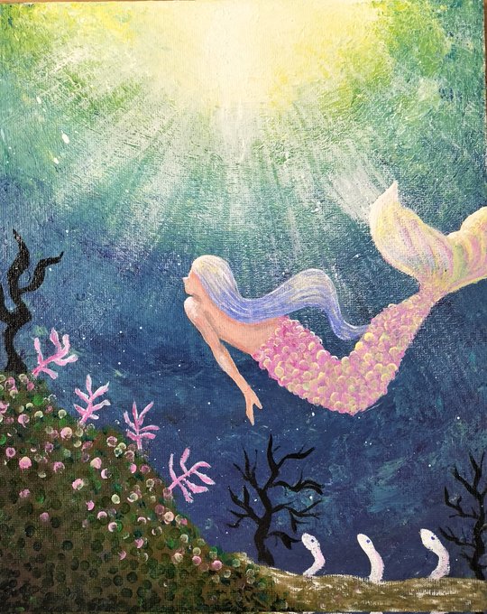 「人魚」 絵を描けた…やっと… #絵描きさんと繫がりたい #絵描きさんとつながりたい #イラスト #お絵描き #art #artwork #acrylicpainting #人魚 #Mermaid