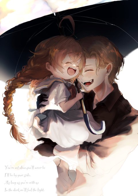 #オリジナル #絵描きさんとつながりたい 吸血鬼のイケメンお姉さんとちびっ子シスターちゃんの仲良し2人ぼっち 左下の文字 (あなたは一人じゃないし、一人になんてさせない。 私はずっとあなたの傍にいる。 あなたが一緒にいてくれる限り 暗闇の中にいたって光を感じられるんだ。)