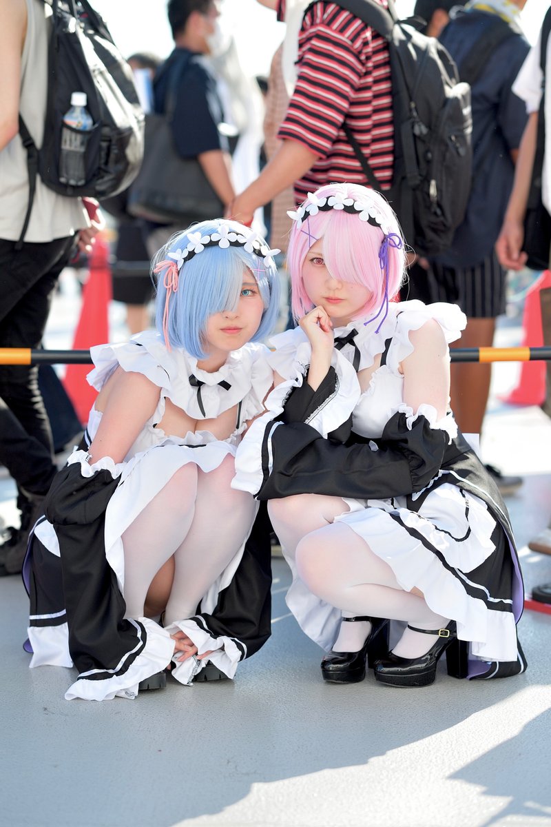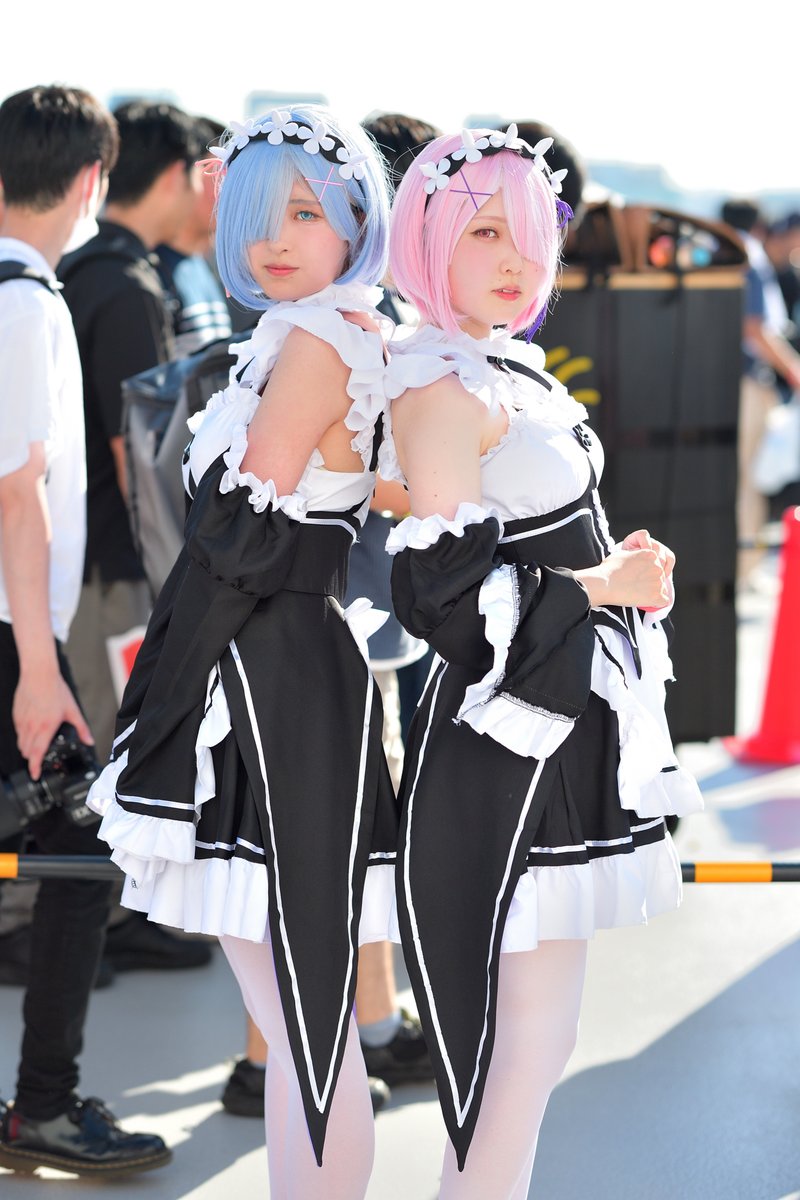 夏コミ1日目はリゼロのラムレムあわせ!暑いなか撮影ありがとうございました⸜(* ॑꒳ ॑*)⸝💓 #C102 #C102コスプレ #C102_cos