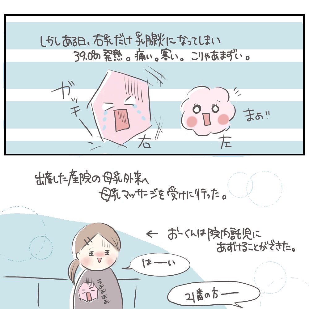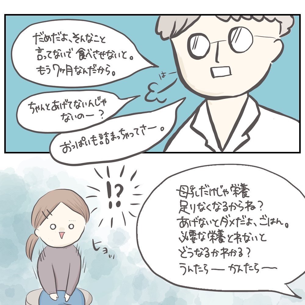 乳ガチガチ熱発39.0度、乳腺炎で病院にかかった時に先生からボロクソ言われて落ち込んだ話。(1/2) やれることはやってますよ、でも食べない子もいるんだよっていうね…。なぜ離乳食についてこんなに言われないといけなかったのか、今考えても謎。 #漫画が読めるハッシュタグ #育児漫画