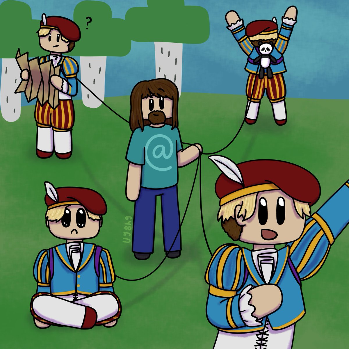 Two bi royals and their loyal allies #mccfanart #MCChampionship #mccp23 #petezahhuttfanart #grianfanart #geminitayfanart #zombiecleofanart