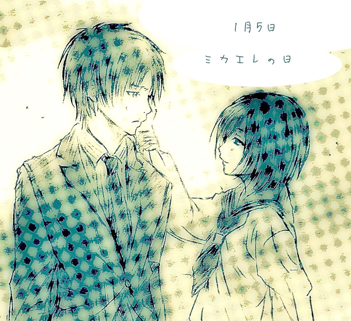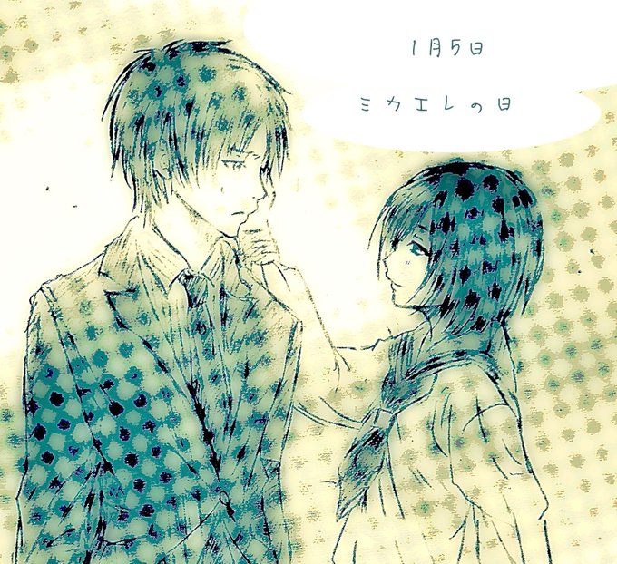 13 50 今日ミカエレの日だって。書こうと思って書かなかった現パロミカエレの落書き供養🙏 23/01/05 21:29
