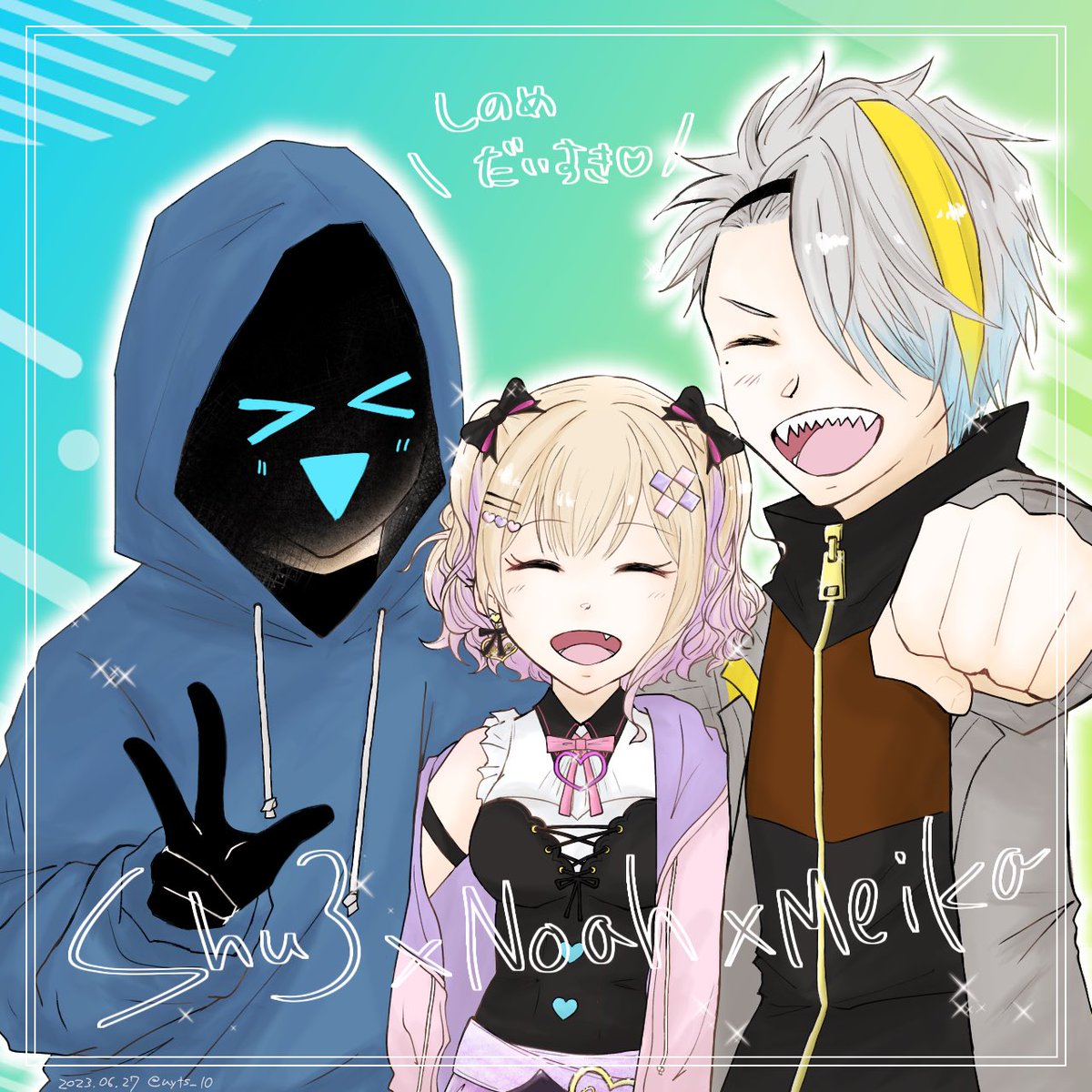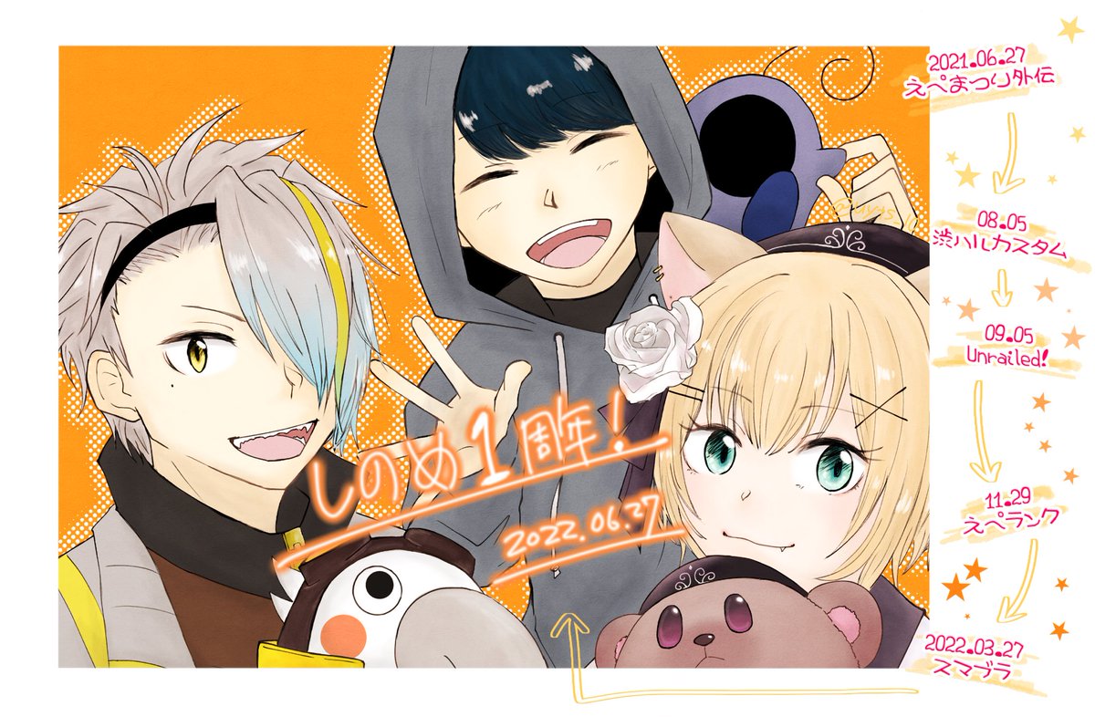 しのめの出会いから一年!出会ってくれてありがとう〜!いっぱい遊んでくれてありがとう〜!これからも仲良しでいてくれたら嬉しいです🥰しのめしか勝たん🤖🧸🦑 2枚目はスマブラ三つ巴エンド嬉しかった絵🎉 #963art #漢気名画