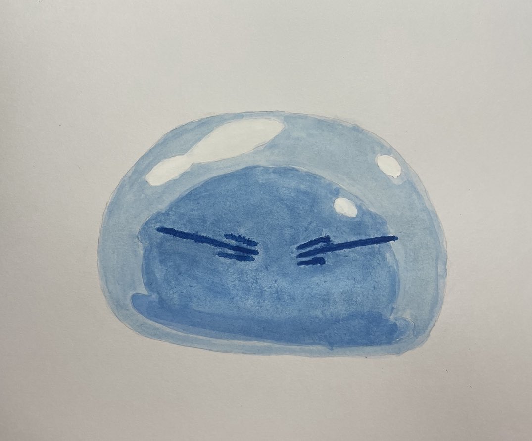 初、水彩画をやってみました。滲んだり混ざったりしてしまいましたが、また挑戦します❗️ #水彩画 #転生したらスライムだった件 #リムル