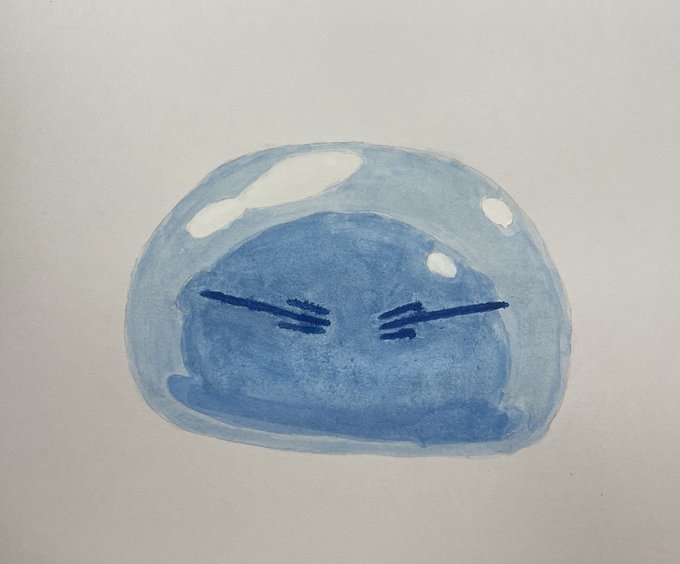 2 40 初、水彩画をやってみました。滲んだり混ざったりしてしまいましたが、また挑戦します❗️ #水彩画 #転生したらスライムだった件 #リムル 22/07/23 00:32