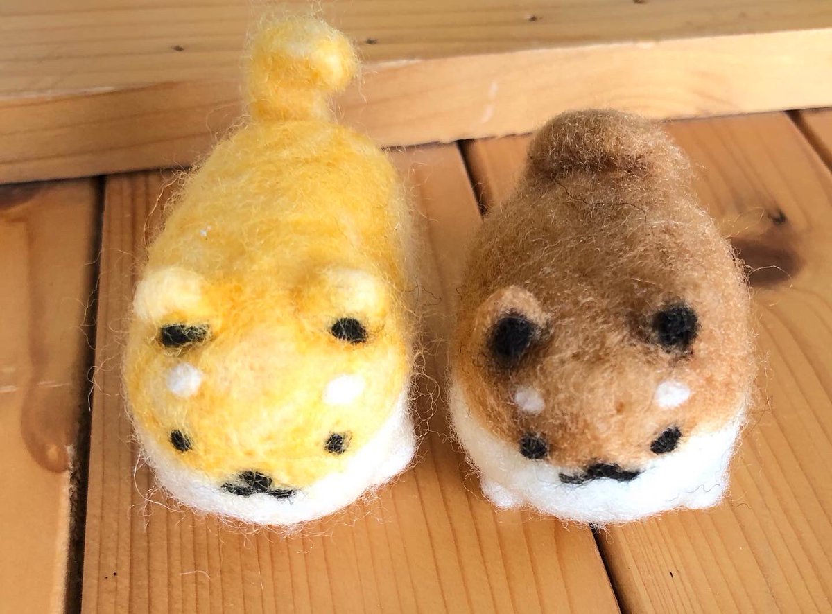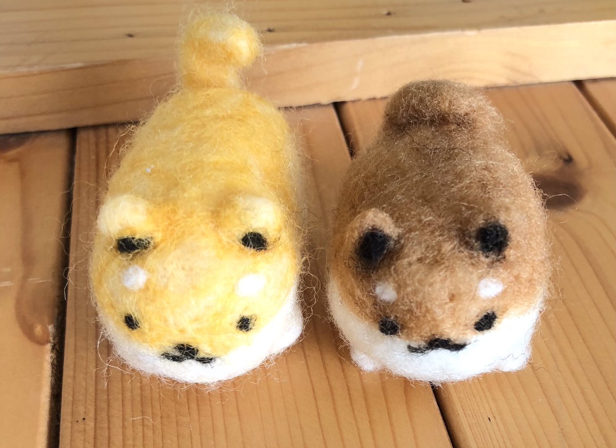 こんにちは😃Twitterはじめました初めての投稿です。 今ハマっているいーすとけんのしばこっぺを羊毛フェルトで作りました。右側がこんがり焼き上がったしばこっぺで左側がちょっと色失敗しちゃったけど、可愛いくできたかな? #いーすとけん #Twitter初心者 #羊毛フェルト #しばこっぺ