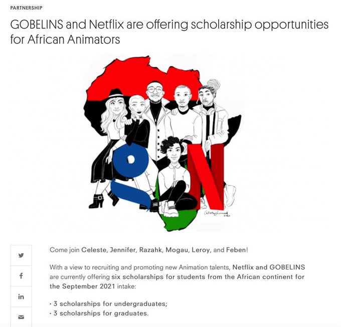 saw this and wanted to share!! scholarship opportunity for African animators gobelins-school.com/gobelins-and-n…