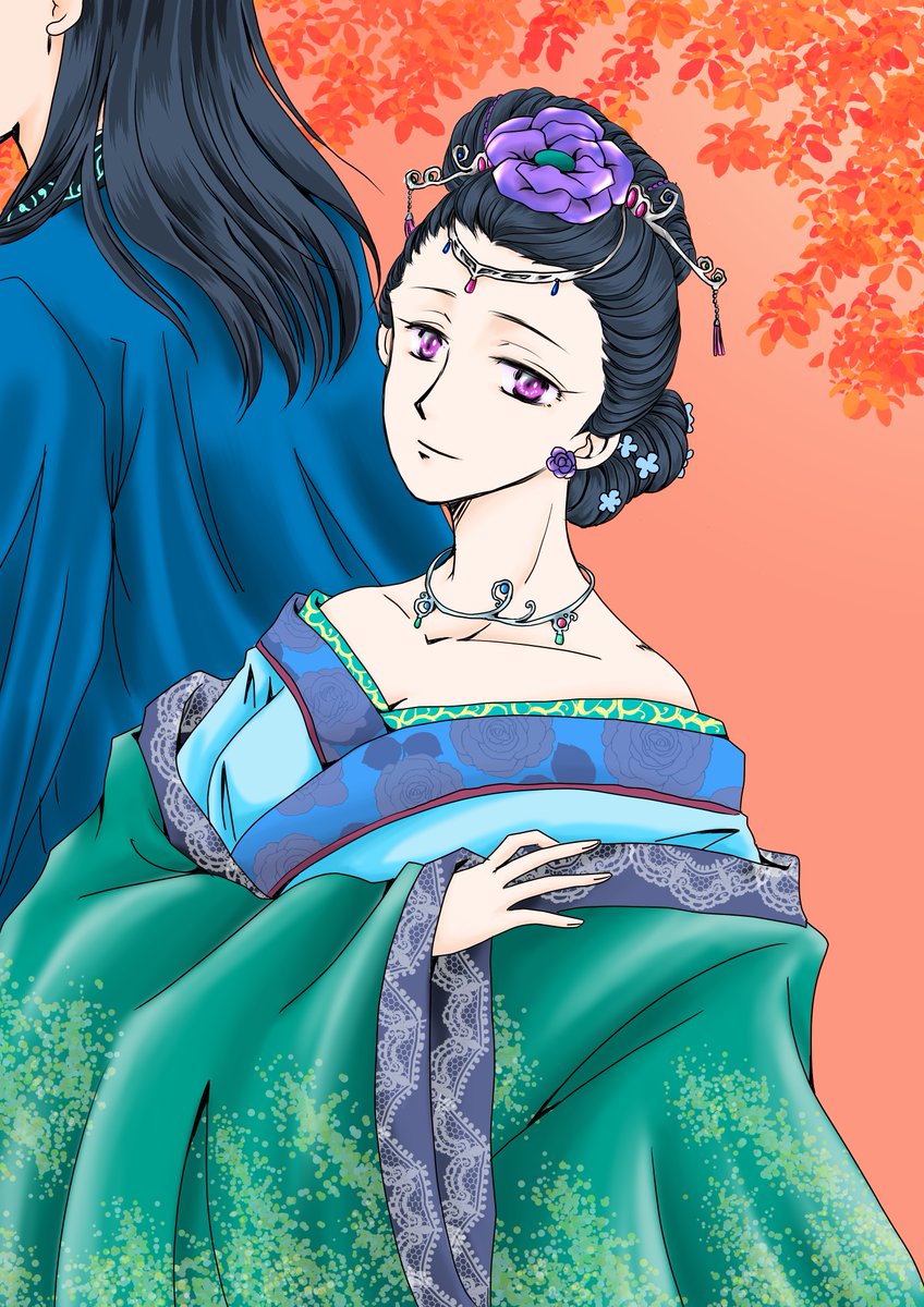 5 53 いつも素敵なお題ありがとうございます! 遅刻なのでお題だけお借りします🙏 『華瑞月帝の御世』 紆余曲折あって王位を継ぐ覚悟を決めた🌙さまと男装🐈ちゃん(描きたかった) 何気にプロポーズ? #薬屋FA 22/08/15 22:45