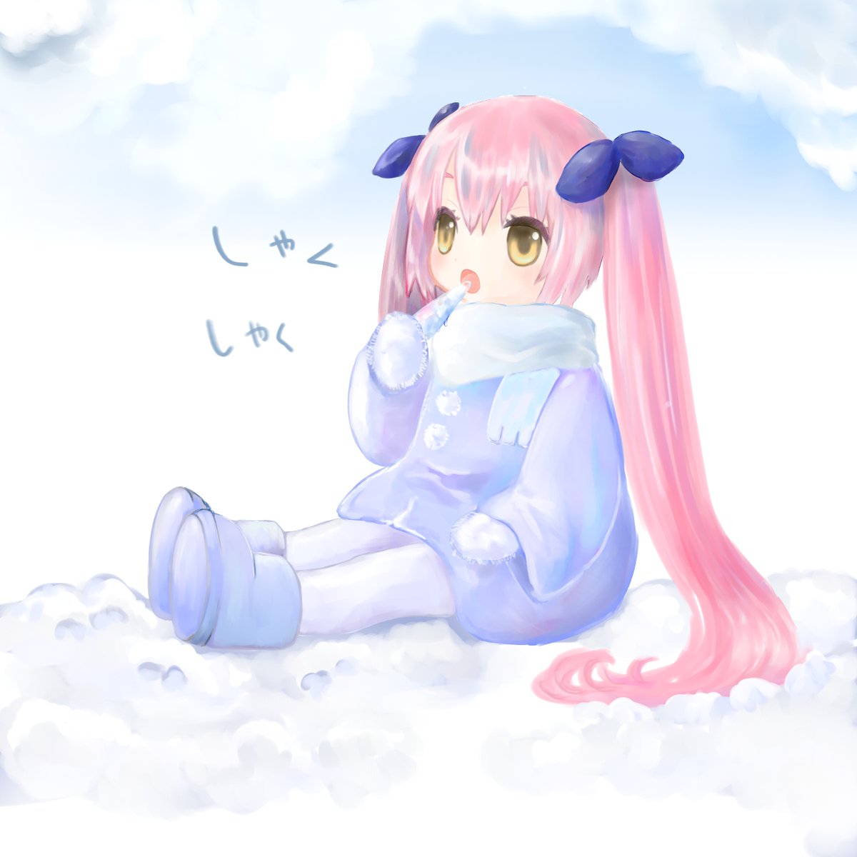つららを食べるリオちゃん 冬の思い出といったらつららを必ず食べてた #おめシス