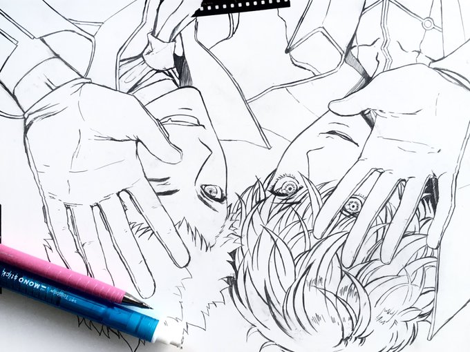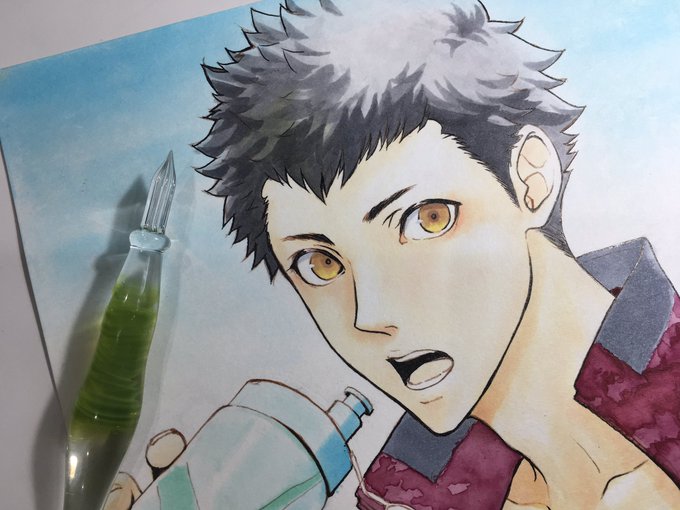 つけペンのコントロールがへたくそ過ぎるのでガラスペンでペン入れしてみたけど良いかもしれない😳 それはともかく黒髪竜司はイイゾ〜😋