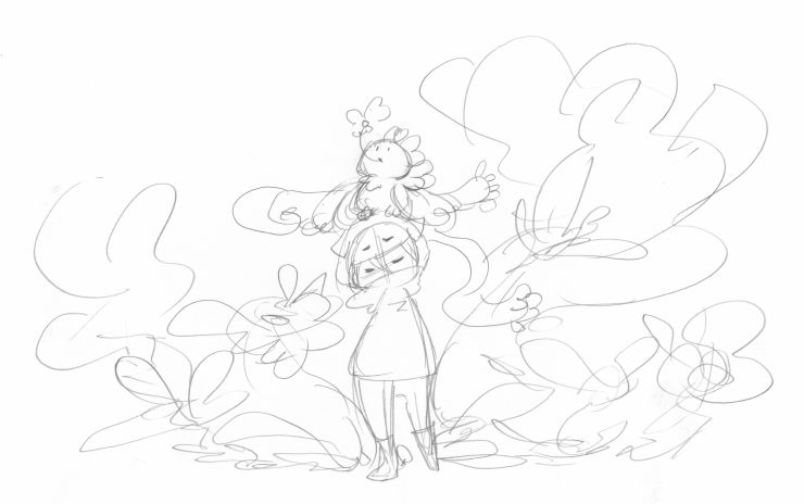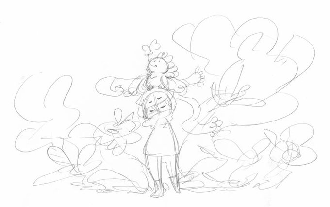 せっかくなのでラフも置いてみる。今回はラフ描いてそのままペン入れしました。背景はほとんどペンで一発描き #このタグを見た人はラフ画とその完成絵を見せる