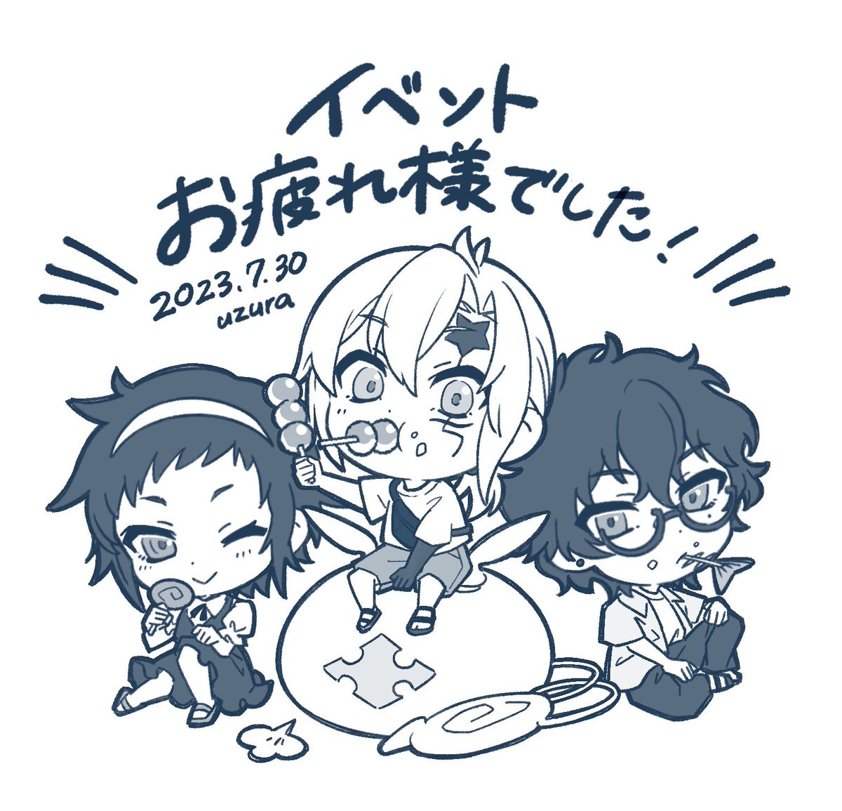 25 79 これはただの自慢でしかないんですけど、のの屋さん(@nono_ya_no )にめちゃかわなアレンロードレロを描いてもろたんです... それぞれの表情がまた良くてこれは癒される... めちゃくちゃ可愛いイラストをありがとうございました!!🍡🍭🎃 23/08/04 17:00