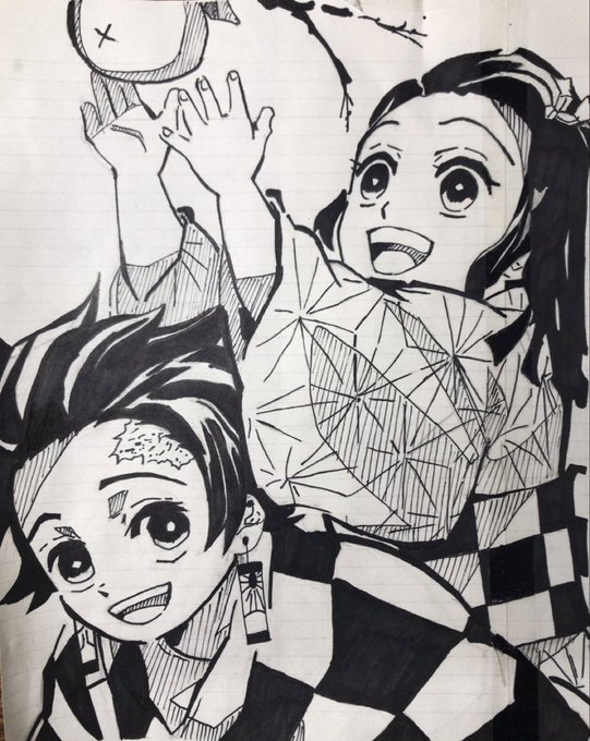 土曜日だから鬼滅の刃 炭治郎と禰󠄀豆子模写してみた。趣味で絵も描いてまーす! #イラスト #鬼滅の刃 #イラスト好きな人と繋がりたい