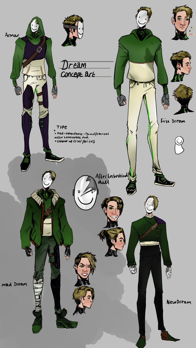 Concept art ideas for Dream. was thinking of maybe doing a comic, but I have to make reference sheets for myself..... Lots of work 😂 #dreamsmp #dreamsmpfanart #dreamfanart #conceptart #dream