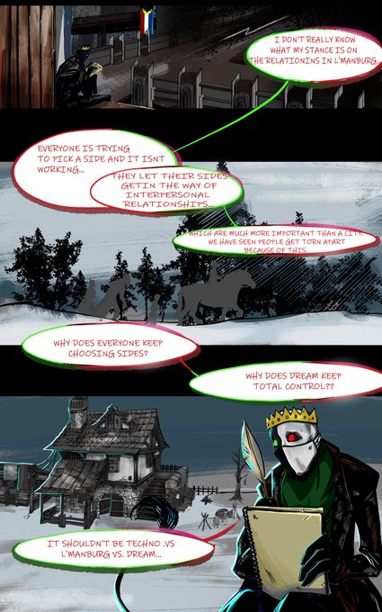 So this is the first page to a long running comic I'm going to be doing. 😳 I would love any feed back from anyone as I'm not quite use to doing comics and any advice it would mean the world 😊.I want it to be the best for you guys😤 #dreamsmpfanart #ranboofanart #dreamsmpcomic
