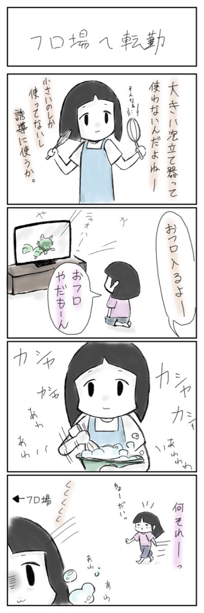 0 4 日々、お風呂へ誘導出来る物がないか探してる👀 #育児漫画 #育児絵日記 23/07/08 19:59