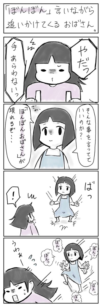 2 24 「ぼんぼんおばさん」は言う事聞かない子を攫いに来るぞ? ぼんぼんぼんぼんっ🫲🫱 #育児絵日記 #育児漫画 23/03/10 07:54